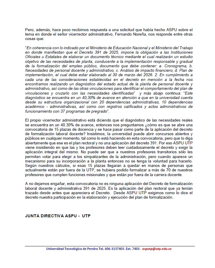 Queremos invitarlos a la charla sobre " Formalización laboral en la Universidad Tecnológica de Pereira" con el...